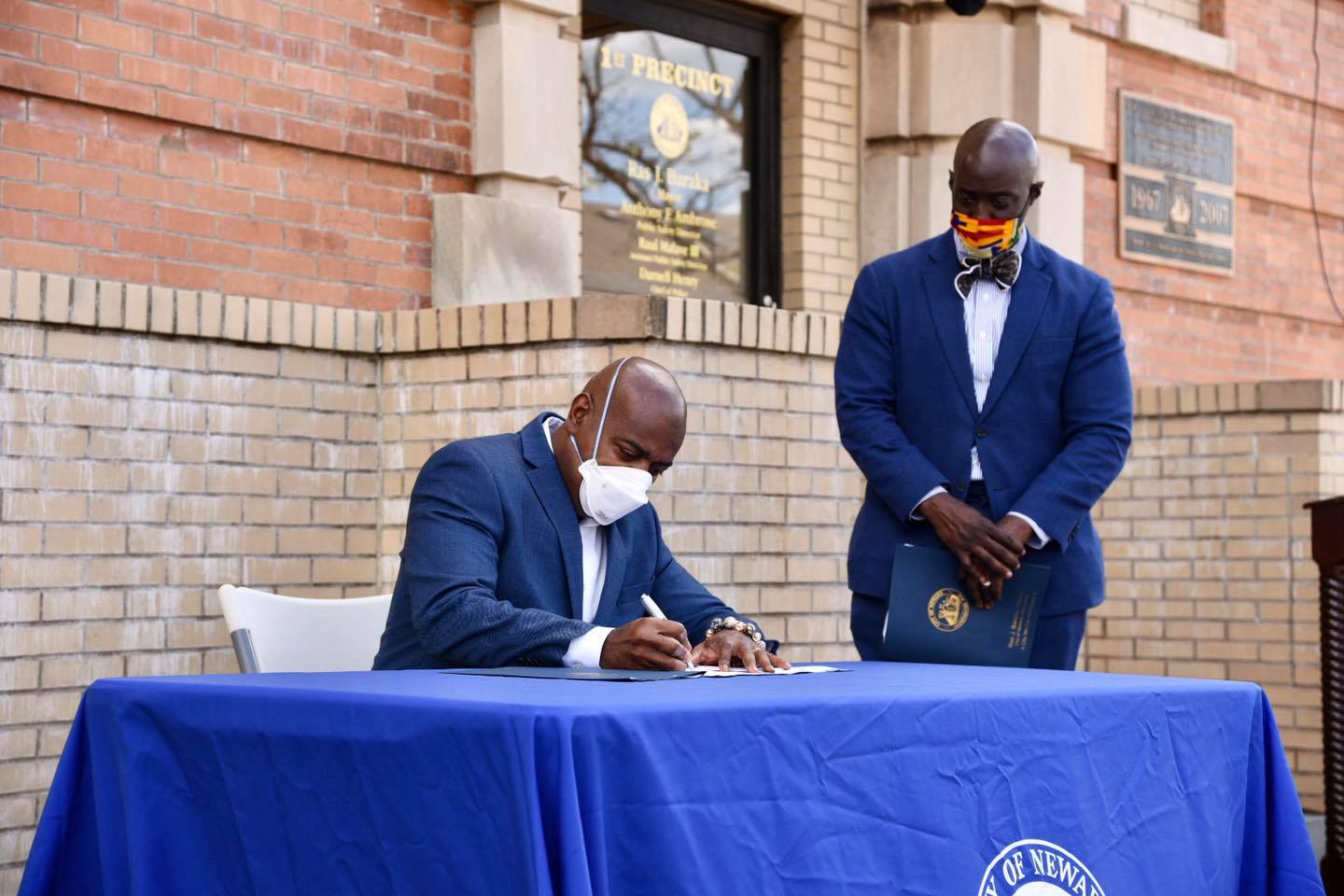 With the stroke of a pen Newark Mayor Ras Baraka signs an ordience creating a permanent Office of Violence Prevention at Newark Police Division’s 1st Precinct at the corner of 17th Avenue and Livingston Street.