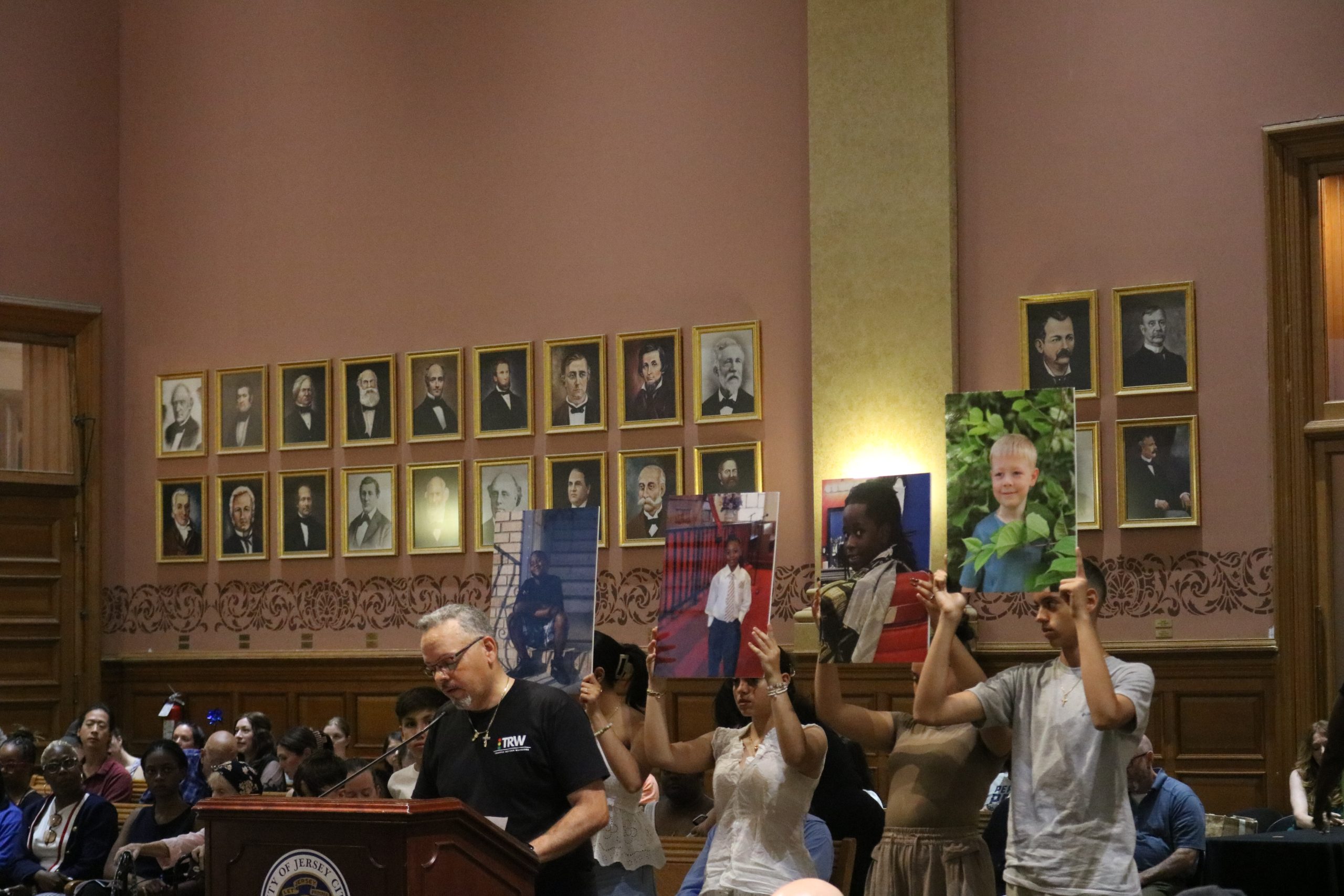 “A moment of silence for the children tragically lost while crossing the street here in Jersey City,” said Sam Ortiz, who is the lead ambassador of Traffic Reform Warriors, who spoke in front of city councilmembers, behind him, his four children were holding up banners with the faces of children who were fatally struck from motor vehicles. “You hear that? You hear it? Their laughter will no longer be heard on the streets again,” a moment of silence was dedicated for Eli.