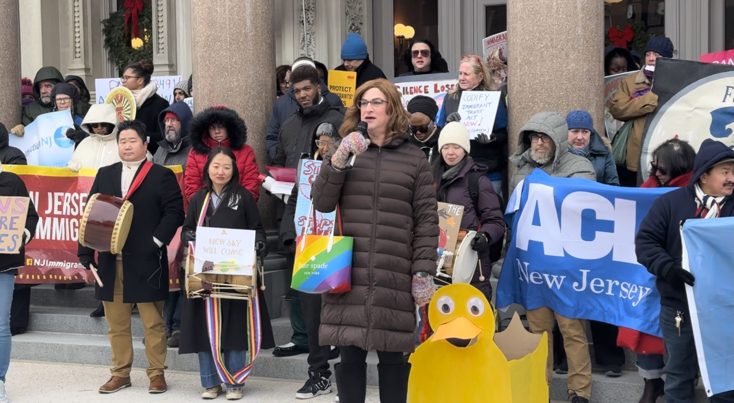 During a demonstration on Monday, outside the state house in Trenton, leaders from organizations including the New Jersey Institute for Social Justice, the ACLU of New Jersey, and the New Jersey Alliance for Immigrant Justice urged legislators to act on the 2025 People’s Agenda, a package of bills they say will shield New Jerseyans from federal threats to civil liberties.