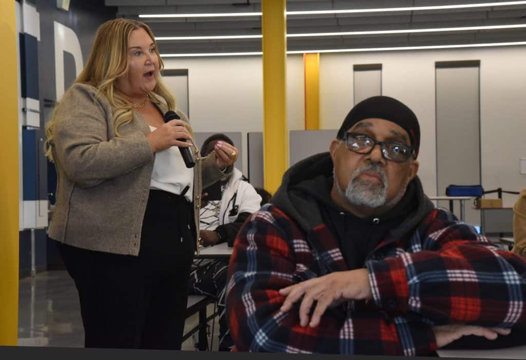 Collins opened the meeting by acknowledging conditions in the units. “I’ve heard a lot about your challenges,” he told the attendees, explaining that, for the sake of time, “This is not a meeting where we’re everybody’s going to stand up and say this is broke, this is broke, this is broke. I know there’s a lot of mess going on.”
