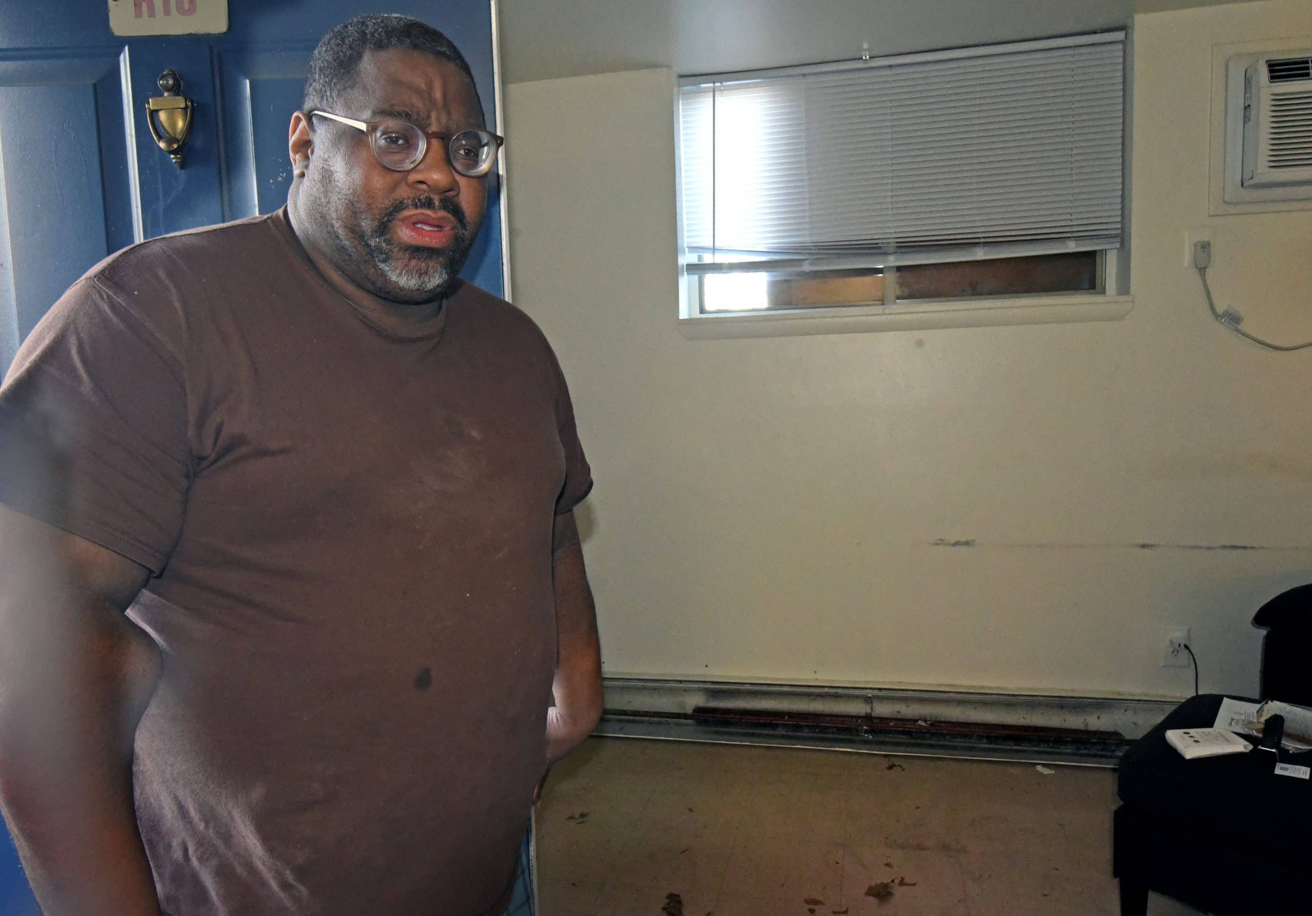 Residents say they share myriad horrors: leaks that are rarely if ever repaired, and the mold that results; insect and rodent infestations; and a nearly complete lack of heat for up to as much as a year or two, forcing residents to use their ovens to warm their apartments and wear coats, hats and gloves around the clock in the winter. It’s also typical, say tenants, for maintenance staff to cut holes in the walls and ceilings to facilitate repairs and not come back to patch them for weeks or months. Ferry Manor has a recurring problem with a broken door that intruders have used and a security guard that is no longer stationed at the building but drives around the property instead.