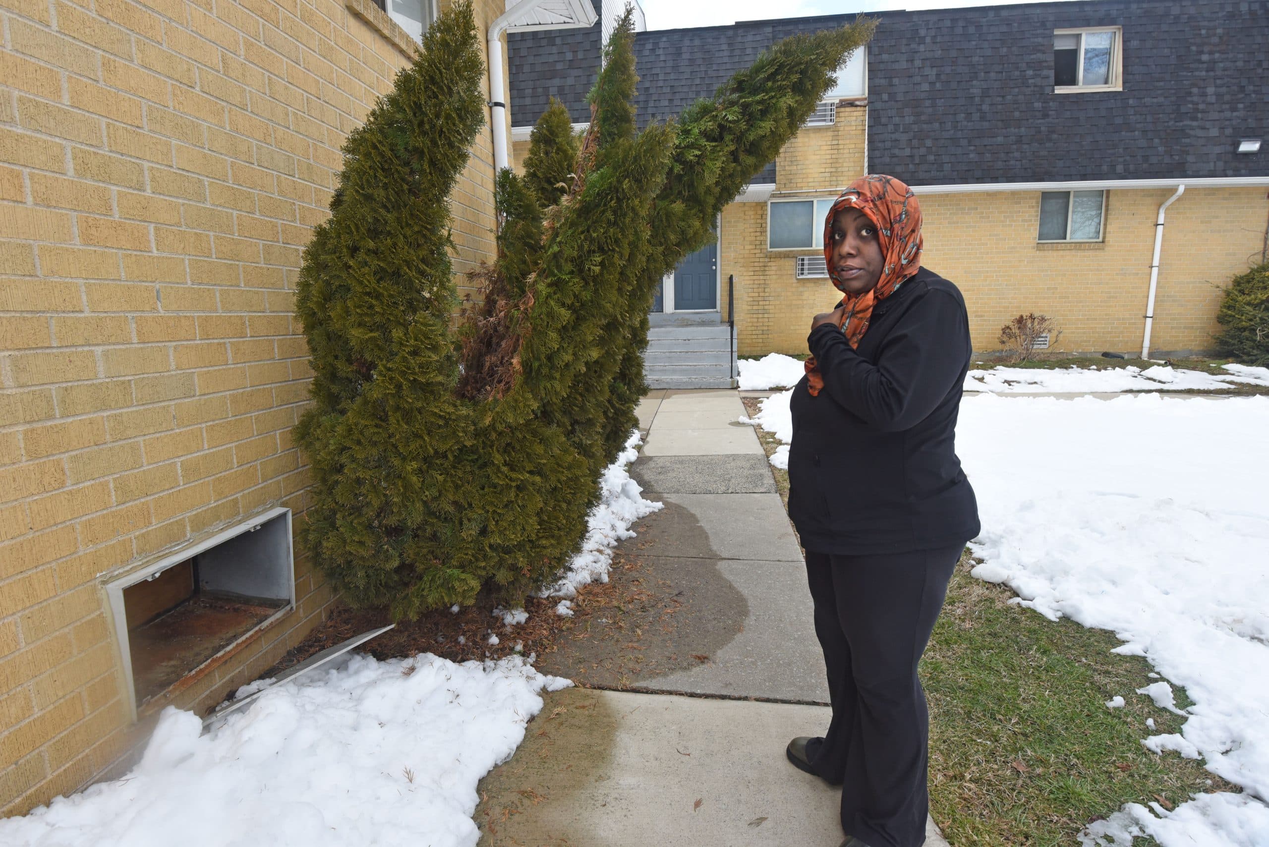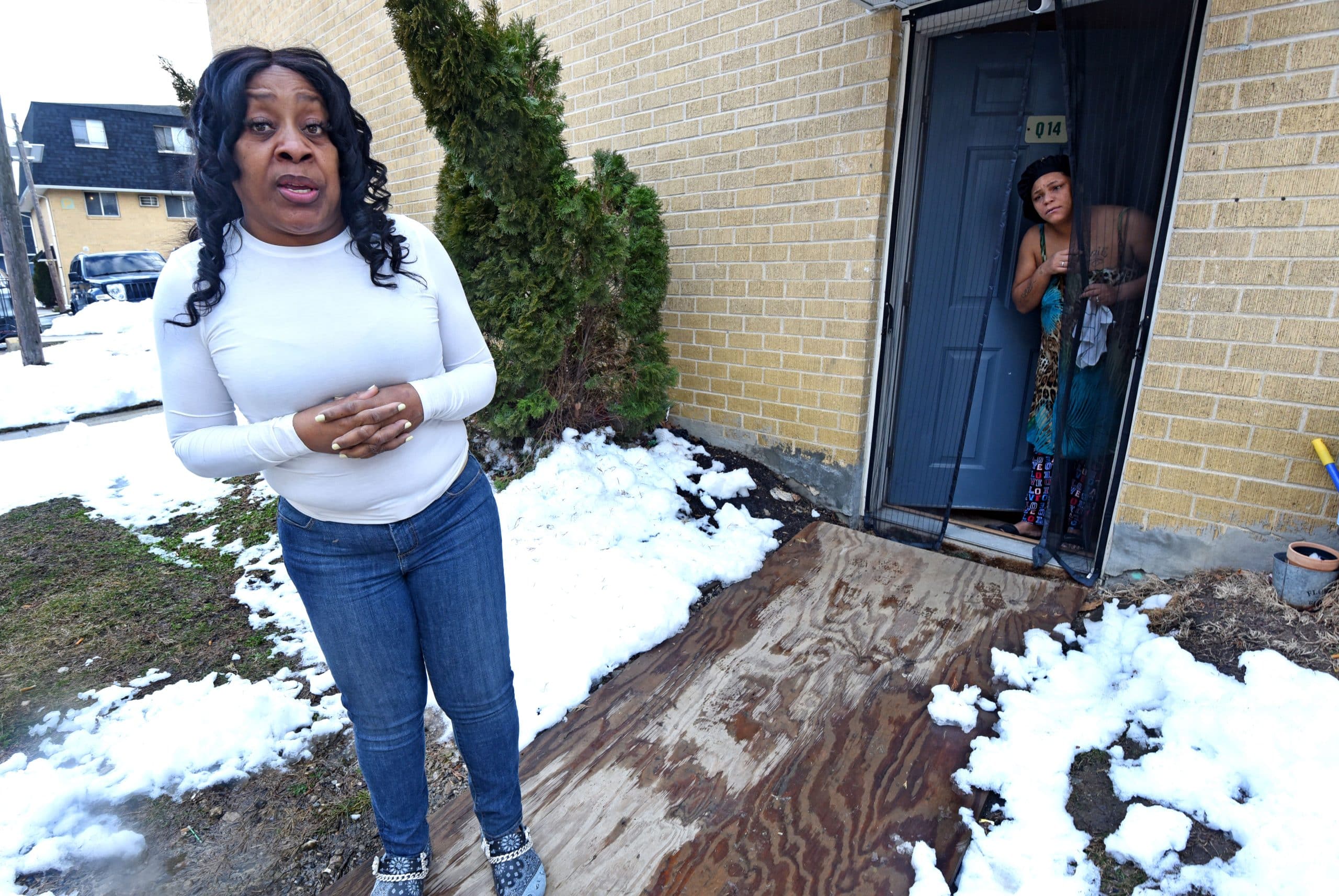 Two days after the meeting, Collins and a handful of tenants stood in a parking lot in front of the Conifer office on Ferry Avenue speaking about the conditions on social media. Collins noted that a crew of Conifer maintenance workers seemed to be attending to some of the repairs, but Bean was skeptical.