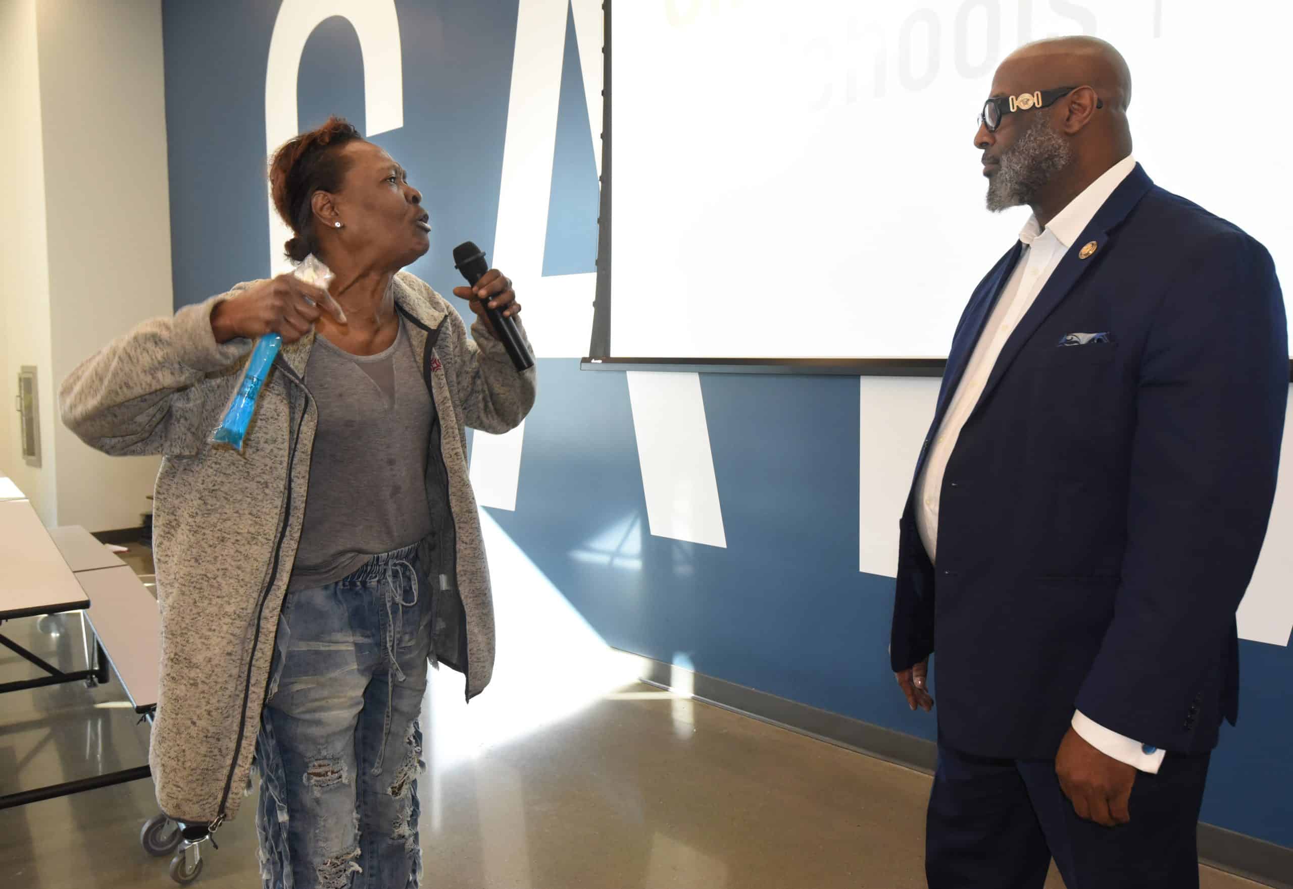 Tamarack tenant Antoinette Bean was one of several residents who said family members had made repairs in her apartment when Conifer would not help. “I pay my rent, I don’t miss a beat,” she said. “It’s not fair.”