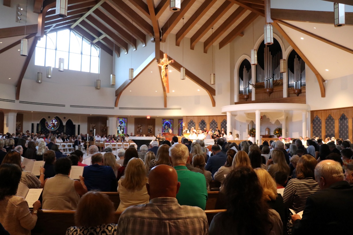 Five years after a fire destroyed its church building, the parish community of the Most Blessed Sacrament in Franklin Lakes celebrated the grand opening of its newly reconstructed church on September 17 with a Mass of Dedication led by Cardinal Joseph W. Tobin, C.Ss.R., Archbishop of Newark.